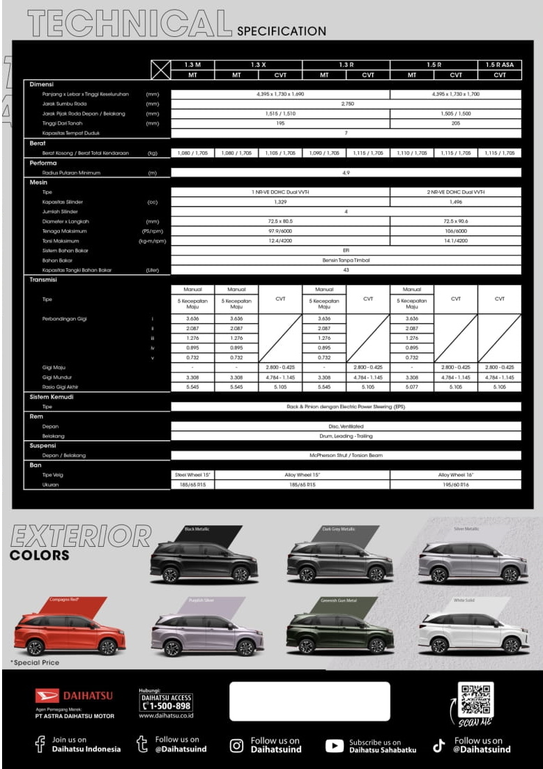 ALL NEW XENIA 1.5 R CVT SC 281.050.000 275.250.000 281.050.000